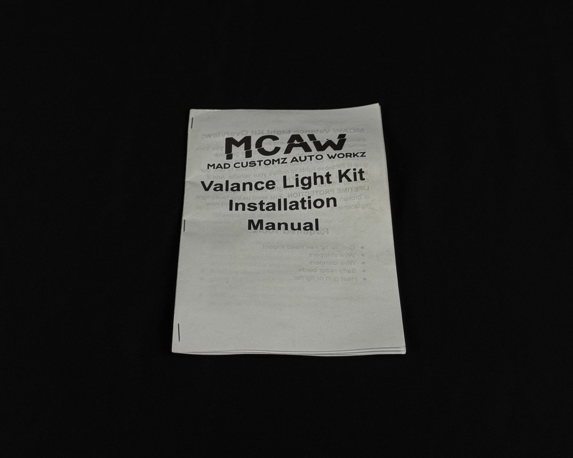 Each kit arrives pre-wired and neatly loomed—say goodbye to wiring woes! Crafted and shipped from our North Jersey facility, we proudly make all our kits in the USA. Our Pro Series valance light kits will light your truck up without ruining its factory charm. For those looking to enhance visibility and style, our MCAW Valance light kit is your shining solution. Enjoy peace of mind with our unmatched lifetime warranty. Our expert support team is dedicated to ensuring a top-notch experience with Mad Customz Auto Workz.